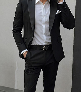 Для мужчин отличным выбором станет классический костюм и белая рубашка. Образ можно дополнить акцентом в виде бабочки или галстука из представленной палитры