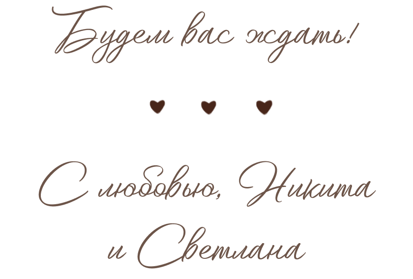 Один из дней этого лета станет самым важным в нашей жизни, и мы хотим провести его вместе с вами. Приглашаем вас на нашу свадьбу, которая состоится: